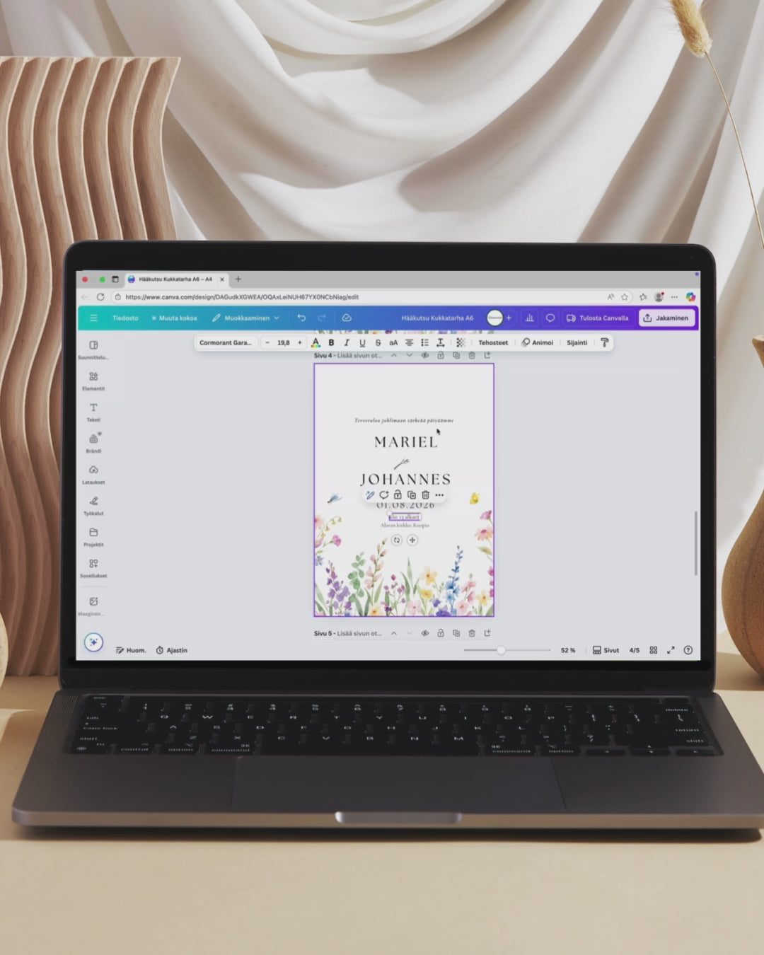Valitse digitaalinen valmis pohja ja muokkaa helposti Canvassa tai tilaa printattuna kotiisi.